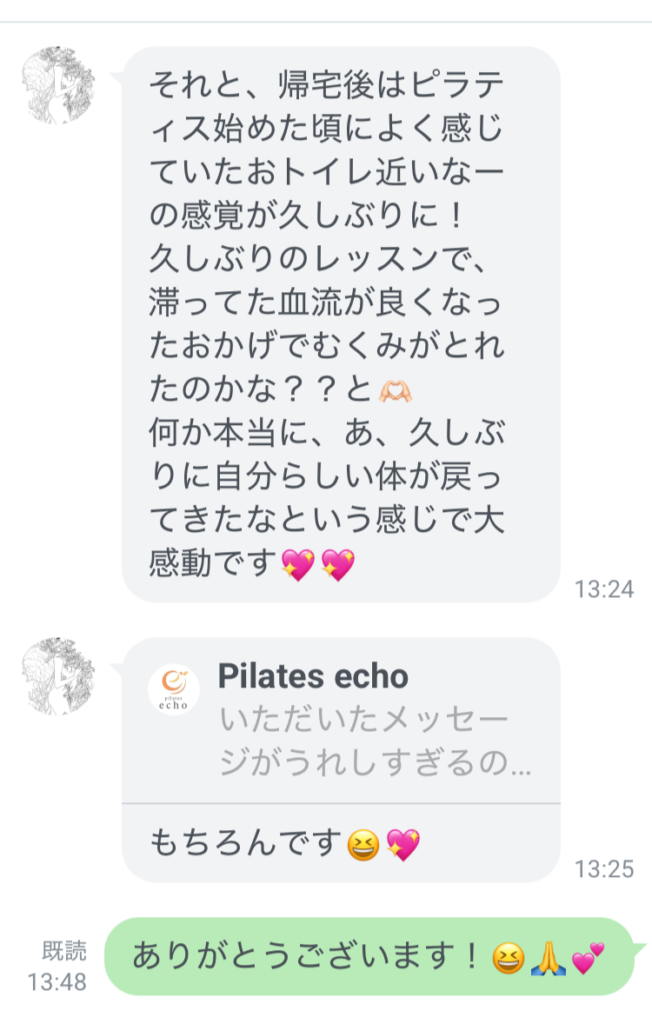 それと、帰宅後はピラティス始めた頃によく感じていたおトイレ近いなーの感覚が久しぶりに!