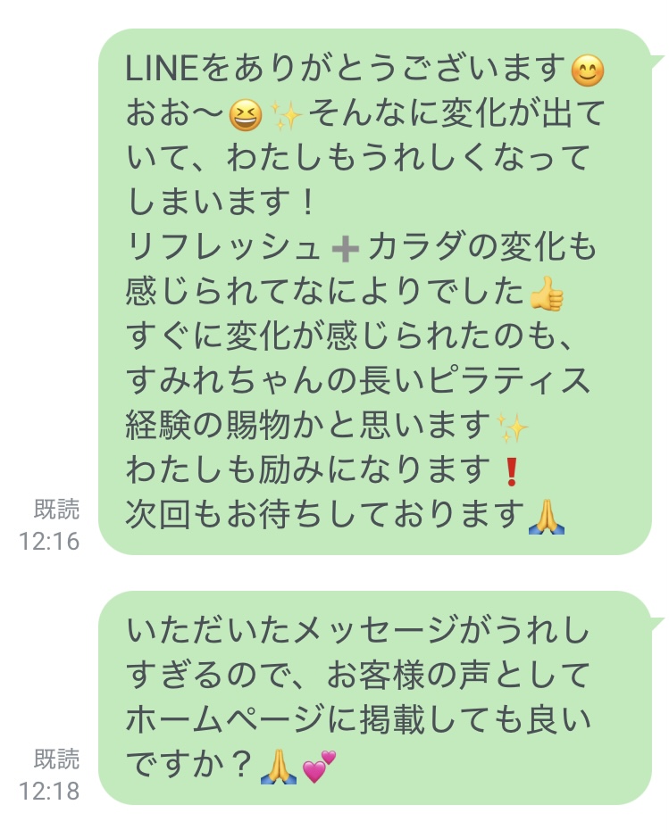 体の変化って本当におもしろいと改めて感じて、あまりの感動に次回まで我慢できずLINEしちゃいました
